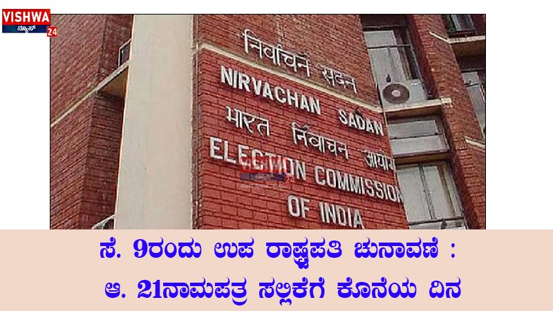 ಸೆ. 9ರಂದು ಉಪ ರಾಷ್ಟ್ರಪತಿ ಚುನಾವಣೆ :  ನಾಮಪತ್ರ ಸಲ್ಲಿಕೆಗೆ ಆ. 21 ಕೊನೆಯ ದಿನ – vishwanews24