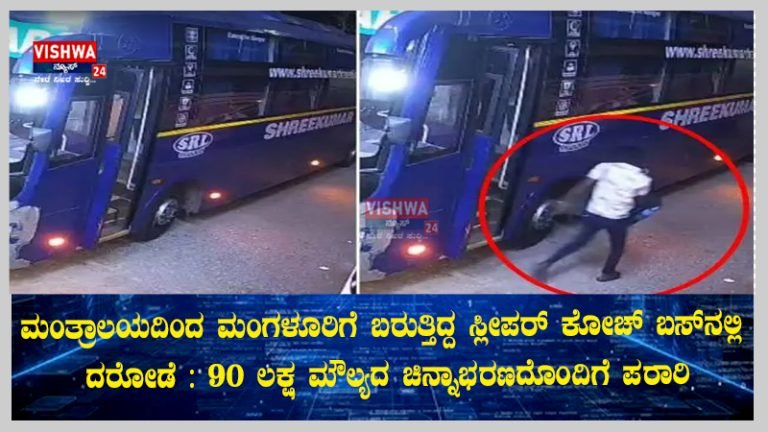 ‘ಶ್ರೀ ಕುಮಾರ್’ ಹೆಸರಿನ ಖಾಸಗಿ ಬಸ್ ಕೊಪ್ಪಳದ ಹೊರವಲಯದಲ್ಲಿ ರಾತ್ರಿ ಊಟಕ್ಕಾಗಿ ಹೋಟೆಲ್ ಒಂದರ ಬಳಿ ನಿಂತಿತ್ತು. ಬಸ್ನಲ್ಲಿದ್ದ ಪ್ರಯಾಣಿಕರಾದ ಮಹಮ್ಮದ್ ಮತ್ತು ಇರ್ಷಾದ್ ಎಂಬುವವರು ಊಟಕ್ಕೆ ಕೆಳಗಿಳಿದಿದ್ದರು. ಈ ಸಮಯಕ್ಕಾಗಿ ಕಾಯುತ್ತಿದ್ದ ಖದೀಮರು, ಕ್ಷಣಾರ್ಧದಲ್ಲಿ ಬಸ್ ಹತ್ತಿ ಅವರ ಬ್ಯಾಗಿನಲ್ಲಿದ್ದ 90 ಲಕ್ಷ ರೂ. ಮೌಲ್ಯದ ಚಿನ್ನಾಭರಣವಿದ್ದ ಚೀಲವನ್ನು ಎಗರಿಸಿ ಪರಾರಿಯಾಗಿದ್ದಾರೆ.