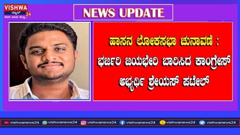 ಹಾಸನ ಲೋಕಸಭಾ ಚುನಾವಣೆ : ಭರ್ಜರಿ ಜಯಭೇರಿ ಬಾರಿಸಿದ ಕಾಂಗ್ರೇಸ್ ಅಭ್ಯರ್ಥಿ ಶ್ರೇಯಸ್ ಪಟೇಲ್ – vishwanews24