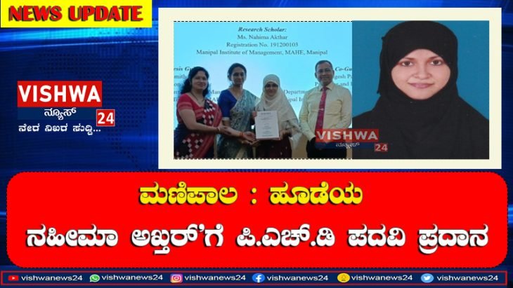 ಹೂಡೆ ನಿವಾಸಿ ನಹೀಮಾ ಅಖ್ತರ್ ಗೆ ಮಣಿಪಾಲ ವಿಶ್ವವಿದ್ಯಾಲಯದಿಂದ ಪಿ.ಎಚ್.ಡಿ ಪದವಿ ಪ್ರದಾನ – vishwanews24