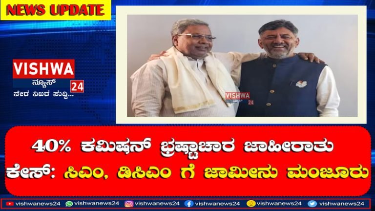 ಬೆಂಗಳೂರು: ಬಿಜೆಪಿ ವಿರುದ್ಧ 40% ಭ್ರಷ್ಟಾಚಾರ ಆರೋಪ ಮಾಡಿ ಜಾಹೀರಾತು ಪ್ರಕಟಿಸಿದ್ದ ಪ್ರಕರಣಕ್ಕೆ ಸಂಬಂಧಿಸಿದಂತೆ ಸಿಎಂ ಸಿದ್ದರಾಮಯ್ಯ ಹಾಗೂ ಡಿಸಿಎಂ ಡಿ.ಕೆ.ಶಿವಕುಮಾರ್ ಅವರಿಗೆ ಇಂದು ಜಾಮೀನು ಮಂಜೂರಾಗಿದೆ.