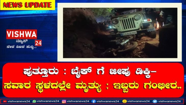 ಪುತ್ತೂರು : ಬೈಕ್ ಗೆ ಜೀಪು ಡಿಕ್ಕಿ – ಸವಾರ ಸ್ಥಳದಲ್ಲೇ ಮೃತ್ಯು ; ಇಬ್ಬರು ಗಂಭೀರ.. Vishwanews24