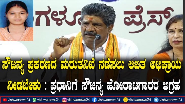 ಸೌಜನ್ಯ ಪ್ರಕರಣದ ಮರುತನಿಖೆ ನಡೆಸಲು ಕೇಂದ್ರ ಮತ್ತು ರಾಜ್ಯ ಸರಕಾರ ಹೈಕೋರ್ಟ್ ಗೆ ಲಿಖಿತ ಅಭಿಪ್ರಾಯ ನೀಡಬೇಕು : ಪ್ರಧಾನಿ ಮೋದಿಗೆ ಸೌಜನ್ಯ ಹೋರಾಟಗಾರರ ಆಗ್ರಹ – Vishwanews24
