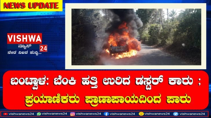 ಬಂಟ್ವಾಳ: ಏಕಾಏಕಿ ಬೆಂಕಿ ಹತ್ತಿ ಉರಿದ ಡಸ್ಟರ್ ಕಾರು ; ಪ್ರಯಾಣಿಕರು ಪ್ರಾಣಾಪಾಯದಿಂದ ಪಾರು – Vishwanews24