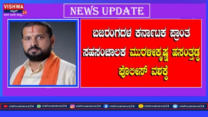 ಬಜರಂಗದಳ ಕರ್ನಾಟಕ ಪ್ರಾಂತ ಸಹಸಂಚಾಲಕ ಮುರಳೀಕೃಷ್ಣ ಹಸಂತ್ತಡ್ಕ ಪೊಲೀಸ್ ವಶಕ್ಕೆ .. Vishwanews24