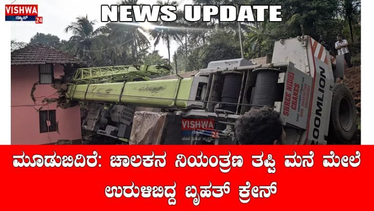 ಮೂಡುಬಿದಿರೆ: ಚಾಲಕನ ನಿಯಂತ್ರಣ ತಪ್ಪಿ ಮನೆ ಮೇಲೆ ಉರುಳಿಬಿದ್ದ ಬೃಹತ್ ಕ್ರೇನ್; ಮನೆಮಂದಿ ಅಪಾಯದಿಂದ ಪಾರು -vishwanews24