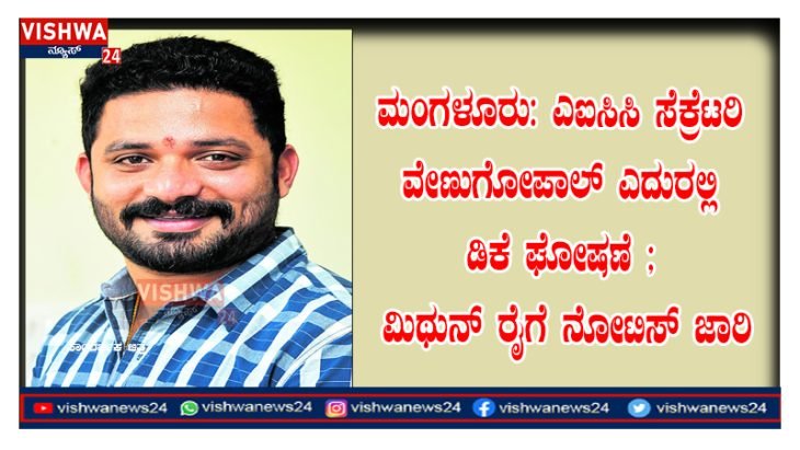 ಮಂಗಳೂರು: ಎಐಸಿಸಿ ಸೆಕ್ರೆಟರಿ ವೇಣುಗೋಪಾಲ್ ಎದುರಲ್ಲಿ ಡಿಕೆ ಘೋಷಣೆ ; ಮಿಥುನ್ ರೈಗೆ ನೋಟಿಸ್ ಜಾರಿ – vishwanews24