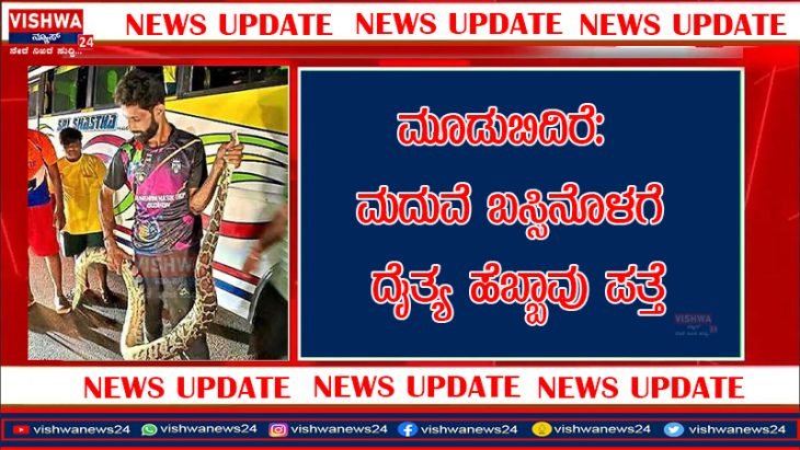 ಮೂಡಬಿದಿರೆ : ಹೋಟೇಲ್ ಎದುರು ನಿಲ್ಲಿಸಿದ್ದ ಮದುವೆ ಬಸ್ ನೊಳಗೆ ದೈತ್ಯ ಹೆಬ್ಬಾವು ಪತ್ತೆ – vishwanews24