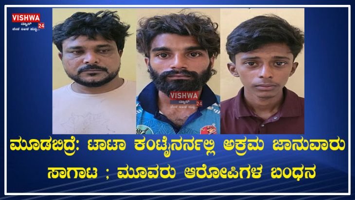 ಮೂಡಬಿದ್ರೆ: ಟಾಟಾ ಕಂಟೈನರ್ನಲ್ಲಿ ಅಕ್ರಮ ಜಾನುವಾರು ಸಾಗಾಟ ; ಮೂವರು ಆರೋಪಿಗಳ ಬಂಧನ – vishwanews24