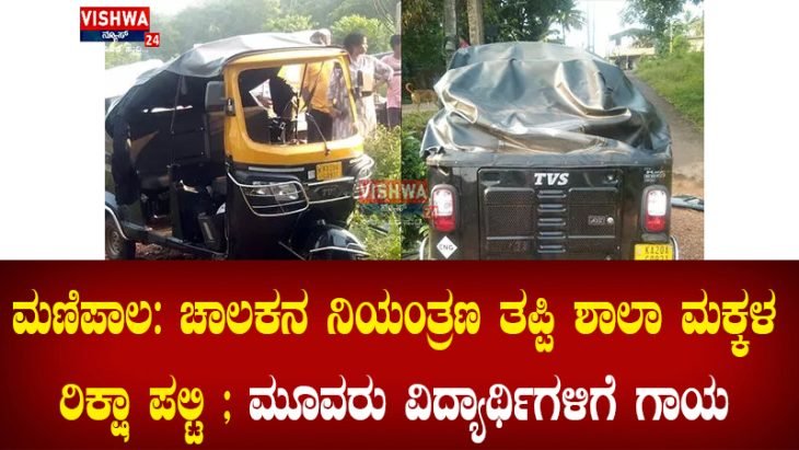 ಮಣಿಪಾಲ: ಚಾಲಕನ ನಿಯಂತ್ರಣ ತಪ್ಪಿ ಶಾಲಾ ಮಕ್ಕಳ ರಿಕ್ಷಾ ಪಲ್ಟಿ ; ಮೂವರು ವಿದ್ಯಾರ್ಥಿಗಳಿಗೆ ಗಾಯ – vishwanews24