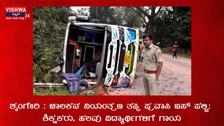 ಶೃಂಗೇರಿ : ಚಾಲಕನ ನಿಯಂತ್ರಣ ತಪ್ಪಿ ಪ್ರವಾಸಿ ಬಸ್ ಪಲ್ಟಿ; ಶಿಕ್ಷಕರು, ಹಲವು ವಿದ್ಯಾರ್ಥಿಗಳಿಗೆ ಗಾಯ ಚಿಕ್ಕಮಗಳೂರು : ಶೃಂಗೇರಿಯ ಕಾವಡಿ ಸಮೀಪದ ಅಗ್ರಹಾರದ ಬಳಿ ಚಾಲಕನ…