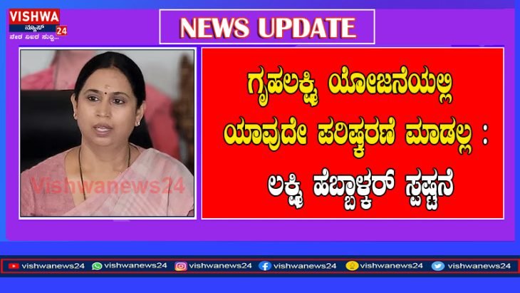 ಗೃಹಲಕ್ಷ್ಮಿ ಯೋಜನೆಯಲ್ಲಿ ಯಾವುದೇ ಪರಿಷ್ಕರಣೆ ಮಾಡಲ್ಲ : ಲಕ್ಷ್ಮಿ ಹೆಬ್ಬಾಳ್ಕರ್ ಸ್ಪಷ್ಟನೆ – vishwanews24