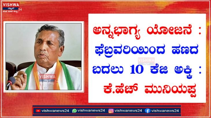 ಅನ್ನಭಾಗ್ಯ ಯೋಜನೆ: ಫೆಬ್ರವರಿ ತಿಂಗಳಿಂದ ಫಲಾನುಭವಿಗಳಿಗೆ ಹಣದ ಬದಲು ಅಕ್ಕಿ : ಕೆ.ಹೆಚ್ ಮುನಿಯಪ್ಪ – vishwanews24