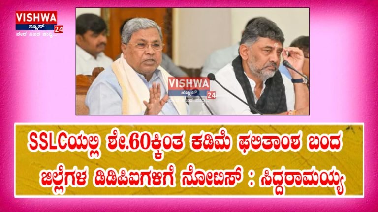 SSLCಯಲ್ಲಿ‌ ಶೇ.60ಕ್ಕಿಂತ ಕಡಿಮೆ ಫಲಿತಾಂಶ ಬಂದ ಜಿಲ್ಲೆಗಳ ಡಿಡಿಪಿಐಗಳಿಗೆ ನೋಟಿಸ್ ,ಕ್ರಮ ಕೈಗೊಳ್ಳಲು ಸಿಎಂ ಸೂಚನೆ – vishwanews24